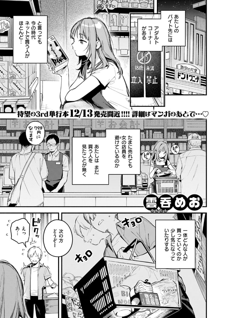 量販店アルバイトの国仲さんが、いつもオナホを買いに来る西くんを密かに観察する日々。