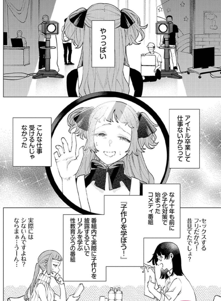 少子化対策という名目で”実際に子作りをする”という衝撃的な教育番組が放送される世界が舞台。